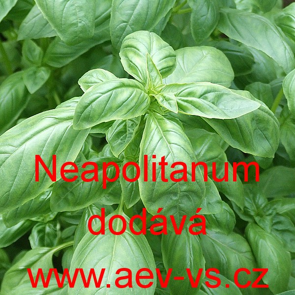 Popis: Bazalka pravá vonná (Ocimum basilicum) Neapolitanum je asi 50 centimetrů vysoká zelenolistá jednoletka. Vyšlechtěna byla speciálně do těstovin. Používáme ji i na grilování, saláty, těstoviny, pizzy. K léčebným účelům je vhodná převážně nať. Přidaná do pokrmů, zlepšuje žaludeční činnost, podporuje chuť k jídlu a trávení, snižuje nadýmání. Přidávat ji můžeme i do čajů. Hrst bazalkové natě můžeme dát do plátěného sáčku a vložit do lázně, pomáhá k celkové relaxaci.