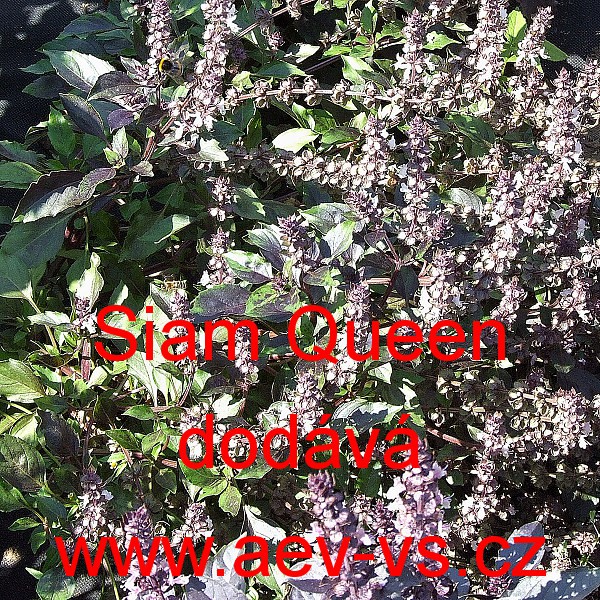 Popis: Bazalka pravá vonná (Ocimum basilicum) Siam Queen je asi 30 centimetrů vysoká jednoletka s purpurovými listeny. Hodí se i do truhlíku. Používáme ji i na grilování, saláty, těstoviny, pizzy. K léčebným účelům je vhodná převážně nať. Přidaná do pokrmů, zlepšuje žaludeční činnost, podporuje chuť k jídlu a trávení, snižuje nadýmání. Přidávat ji můžeme i do čajů. Hrst bazalkové natě můžeme dát do plátěného sáčku a vložit do lázně, pomáhá k celkové relaxaci.