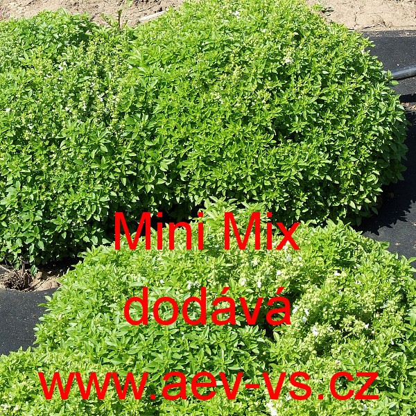 Popis: Bazalka pravá vonná (Ocimum basilicum) Mini Mix je asi 25 centimetrů vysoká zelenolistá, mini směs, jednoletek do truhlíku a květináče. Používáme ji i na grilování, saláty, těstoviny, pizzy. K léčebným účelům je vhodná převážně nať. Přidaná do pokrmů, zlepšuje žaludeční činnost, podporuje chuť k jídlu a trávení, snižuje nadýmání. Přidávat ji můžeme i do čajů. Hrst bazalkové natě můžeme dát do plátěného sáčku a vložit do lázně, pomáhá k celkové relaxaci.