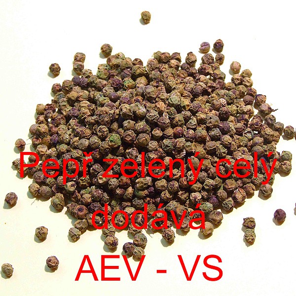 Popis: Pepř zelený celý je koření na masa, saláty, omáčky, uzeninu, atd.