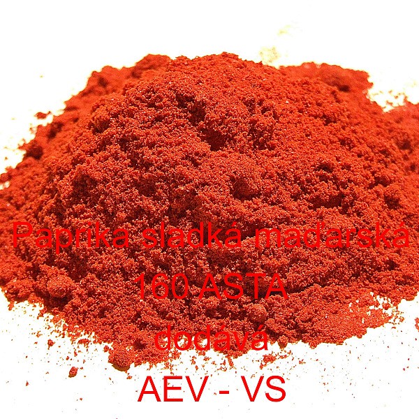 Paprika sladká maďarská 160 ASTA je vysoce kvalitní paprika na guláše, polévky, omáčky, masa, ryby, drůbež, atd.