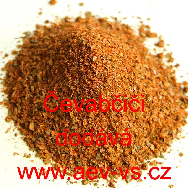 Čevabčiči je červenohnědá mírně ostrá směs koření na mletá masa, čevabčiči, karbanátky, kuličky, špízy, plněné lilky, papriky, atd.