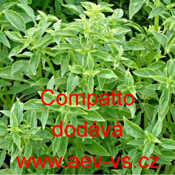 Bazalka pravá vonná (Ocimum basilicum) Compatto je nízká zelenolistá drobnolistá bazalka pravá vonná vhodná i do květináčů, truhlíků, okrasných nádob, atd.
