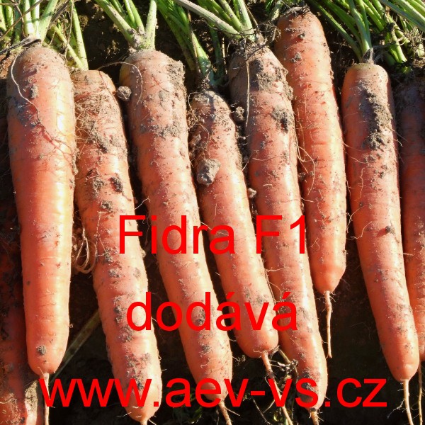 Mrkev obecná (Daucus carota ssp. Sativus) Fidra F1 je poloraná odolná válcovitá tupěji ukončená asi 16 až 18 centimetrů dlouhá oranžově červená hybridní mrkev obecná.