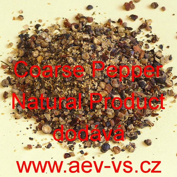 Coarse Pepper Natural Poduct (pepřové koření hrubé) je speciální směs přírodních koření bez přidaných alergenů, glutamátu sodného, umělých barviv, zvýrazňovačů chuti, konzervačních látek (tak zvaných Éček) či aditiv. Tato směs je vhodná i pro děti, alergiky, těhotné a kojící ženy. Použít ji můžeme třeba při přípravě steaků.