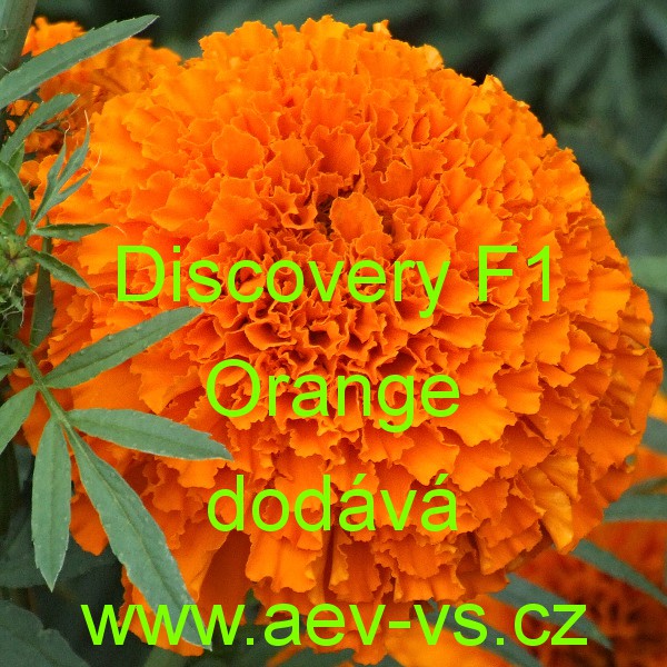Aksamitník vzpřímený (Tagetes erecta nana) Discovery F1 Orangeje nízká oranžová plnokvětá velkokvětá (kulatokvětá) jednoletá květina.