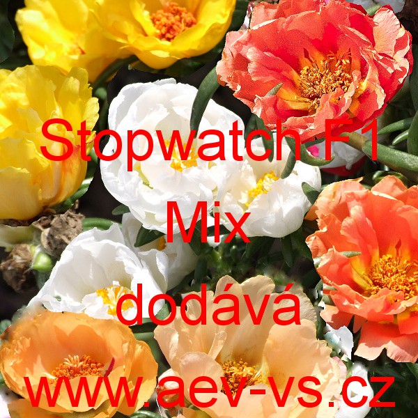 Šrucha velkokvětá (Portulaca grandiflora) Stopwatch F1 Mix je směs nízkých hybridních velkokvětých plnokvětých jednoletých květin.