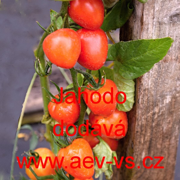 Rajče tyčkové (Solanum lycopersicum L.) Jahodo je rané červené "jahodové" asi 16 až 20 gramové příjemně rajčatově aromatické tyčkové rajče do skleníku, fóliovníku i na prosluněný záhon.