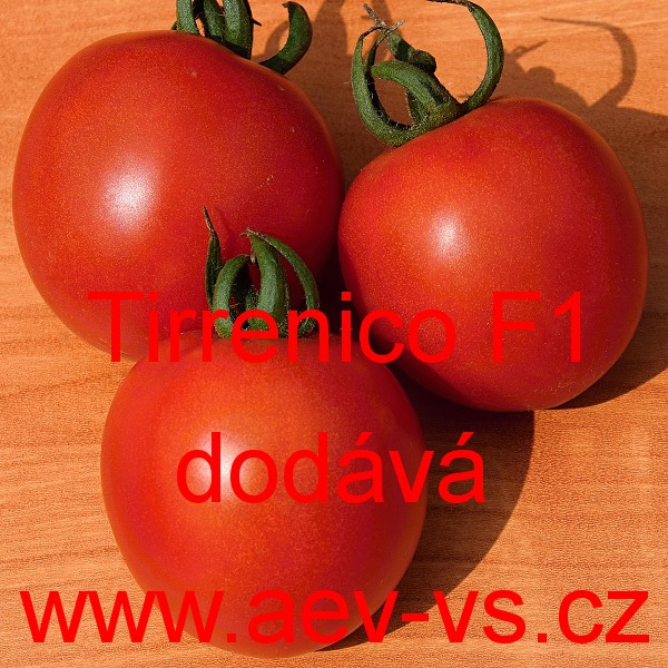 Rajče tyčkové (Lycopersicon lycopersicum L.) Tirrenico F1 je polorané chorobám a plísním odolné pevné LSL asi 120-140 gramové kulovité lesklé tmavě červené tyčkové hybridní rajče na prosluněný záhon i pro studené jarní a podzimní rychlení ve fóliových krytech.