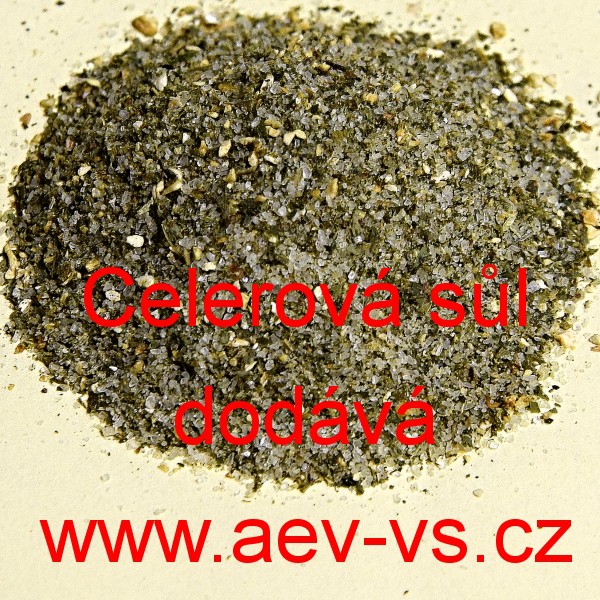 Popis: Celerová sůl, obsahuje: asi 83% jedlé kuchyňské soli, celer, rostlinný olej (řepkový)