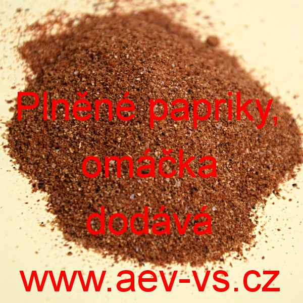 Plněné papriky, omáčka je červenohnědá mírně pikantní směs koření na přípravu omáčky na plněné papriky.