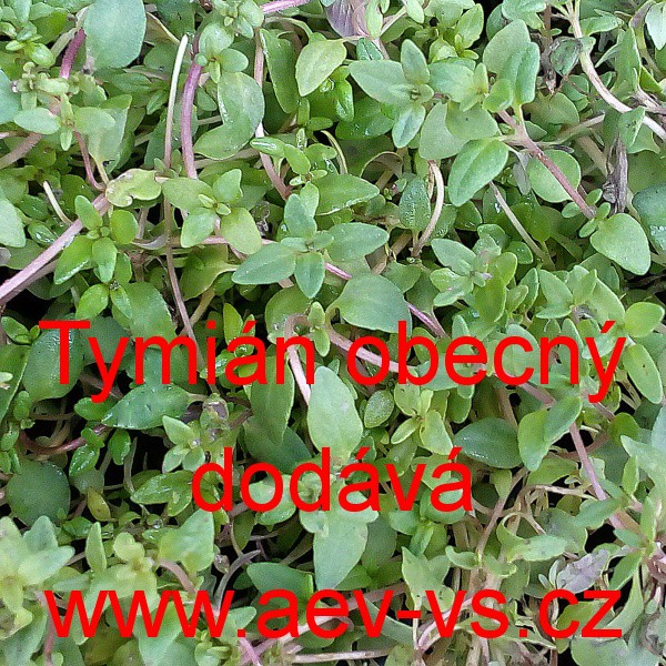 Popis: Tymián obecný (Thymus vulgaris) je asi 40 centimetrů vysoká trvalka. Zvyšuje obranyschopnost organismu proti chřipkovým onemocněním. Má silné účinky proti bacilům, "zabíjí" je za půl hodiny. Je močopudný. Užívá se i při žaludečních potížích, nadýmání a průjmech. Pomáhá při migréně, duševních depresích, nervozitě, nespavosti a také při potížích s krevním oběhem. Jako koření se používá hlavně na uzená masa, polévky, ryby a zvěřinu.