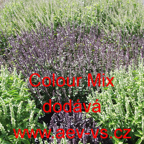 Bazalka pravá vonná (Ocimum basilicum) Colour Mix je směs zelenolistých, červenolistých až purpurovolistých kultivarů. Je výborná i na grilování, saláty, těstoviny, pizzy.