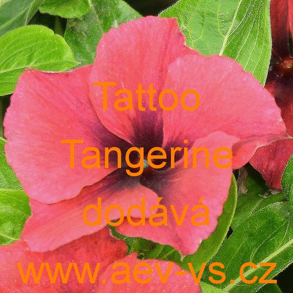 Popis: Barvínek růžový, katarantus, vinca (Catharanthus roseus) Tattoo Tangerine je košatá asi 25 až 35 centimetrů vysoká a asi 15 až 20 centimetrů široká barevně velice neobvyklá a dekorativní tmavěji oranžovo/červená jednoletá květina s tmavě fialovým středem a bílým okem uprostřed květu. Hodí se na záhon, do truhlíku, květináče, okrasného koryta a závěsných nádob. Výborně kvete i na přímém slunci. Semena se dodávají ve výběrové kvalitě Professional Seeds.