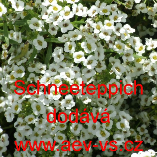 Popis: Tařicovka přímořská, laločnice (Lobularia maritima) Schneeteppich je asi 15 centimetrů vysoká bílá jednoletá květina. Hodí se na záhon, do truhlíku, květináče, okrasného koryta a závěsných nádob, přepadává přes okraje.