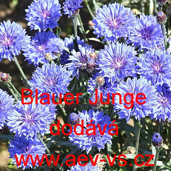 Popis: Chrpa modrá, polní (Centaurea cyanus) Blauer Junge Mischung je asi 80 centimetrů vysoká modrá (v odstínech) plnokvětá jednoletá květina. Využít ji můžeme k řezu (do vázy) i k sušení (do suchých vazeb).