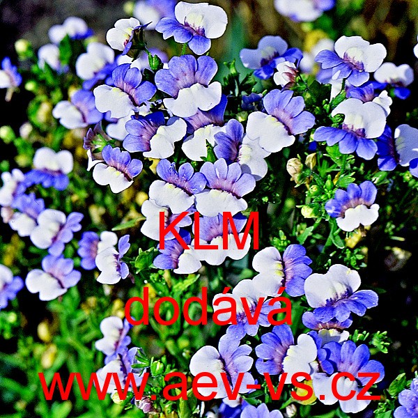Popis: Hledíkovka zduřelá (Nemesia strumosa) KLM je asi 25 centimetrů vysoká dvoubarevná modrá/bílá jednoletá květina. Hodí se na záhon, do truhlíku, květináče a okrasného koryta.