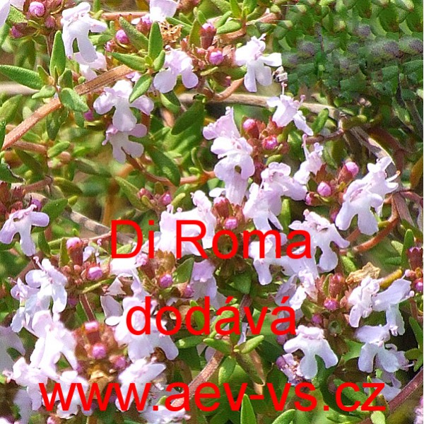 Popis: Tymián obecný (Thymus vulgaris) Di Roma je asi 10 centimetrů vysoká růžová voňavá vytrvalá květina.