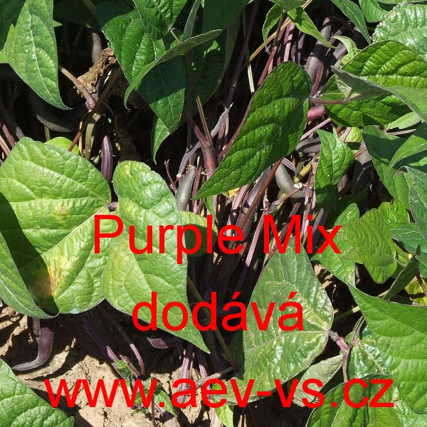 Popis: Fazol keříčkový (Phaseolus vulgaris var. nanus) Purple Mix je speciální směs keříčkových fazolů s modrofialovými lusky.
