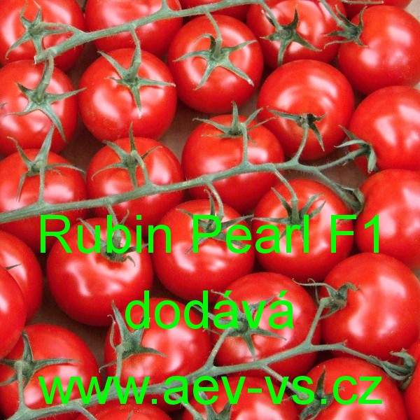Popis: Rajče tyčkové (Lycopersicon lycopersicum) Rubin Pearl F1 je polorané sladce aromatické červené asi 13-18 gramové třešňové tyčkové hybridní rajče do skleníku, fóliovníku a na záhon.