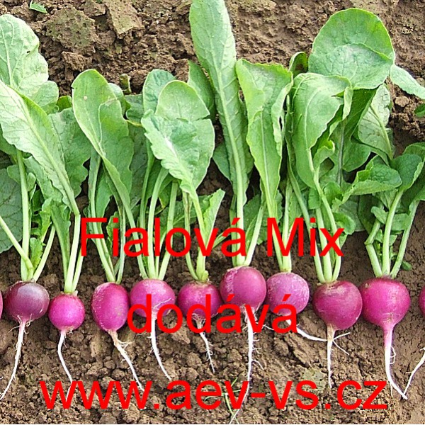 Popis: Ředkvička (Raphanus sativus var. sativus) Fialová Mix je směs fialových ředkviček vhodných pro jarní a podzimní výsevy.