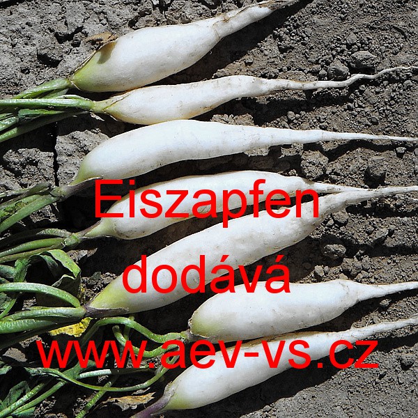 Popis: Ředkvička (Raphanus sativus var. sativus) Eiszapfen je bílá válcovitá "celoroční" ředkvička.