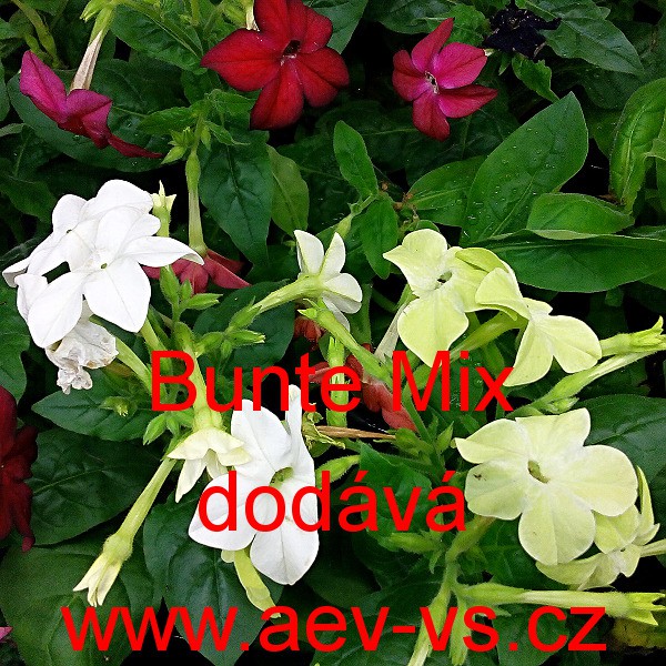 Tabák Sandeřin, Sanderův (Nicotiana sanderae) Bunte Mix je směs vysokých jednoletých květin.