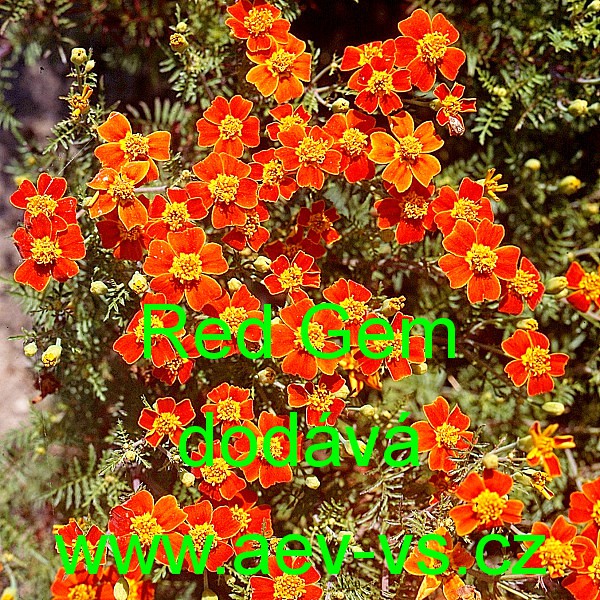 Popis: Aksamitník jemnolistý (Tagetes tenuifolia) Red Gem je asi 30 centimetrů vysoká sytě červená jednoduše kvetoucí jednoletá květina. Hodí se i do truhlíku, květináče a okrasného koryta.