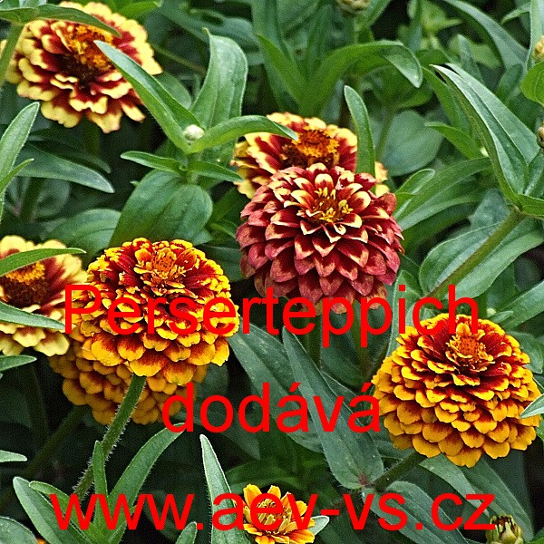 Popis: Ostálka úzkolistá, cínie (Zinnia angustifolia) Perserteppich je asi 45 centimetrů vysoká směs plnokvětých jednoletých květin.