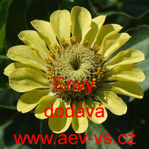 Popis: Ostálka sličná lepá, cínie (Zinnia elegans) Envy je asi 70 centimetrů vysoká žlutozelená jednoletá květina.