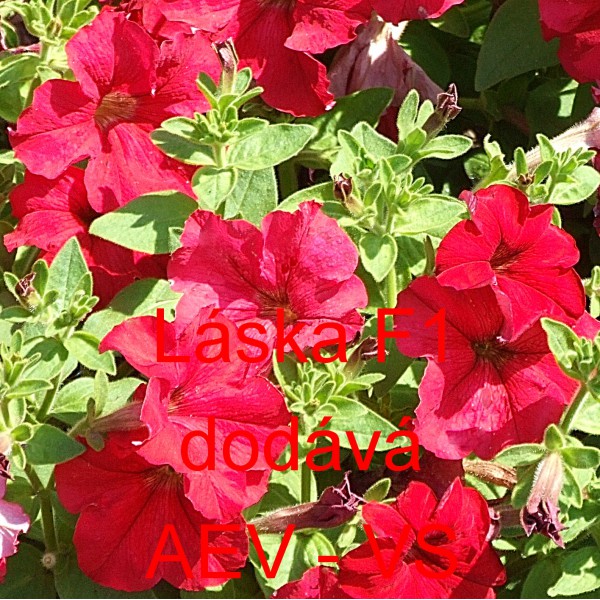 Popis: Petúnie velkokvětá, zkřížená, nízká (Petunia hybrida grandiflora nana) Láska F1 je asi 35 centimetrů vysoká červená velkokvětá jednoletá květina. V nádobách hlouběji přepadává přes okraje a vytváří nádherné převisy. Hodí se na záhon, do truhlíku, květináče a okrasného koryta. Semena se dodávají ve výběrové kvalitě Professional Seeds.