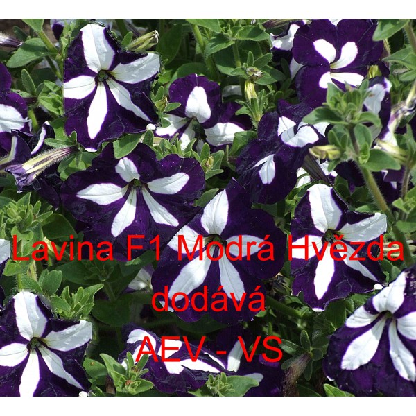 Popis: Petúnie velkokvětá převislá (Petunia hybrida grandiflora pendula) Lavina F1 Modrá hvězda je asi 35 centimetrů vysoká převislá velkokvětá jednoletá květina. Vytváří až 70 centimetrové převisy. Hodí se na záhon, do truhlíku, květináče a okrasného koryta. Semena se dodávají ve výběrové kvalitě Professional Seeds.