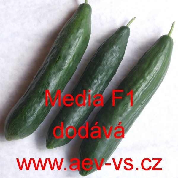 Popis: Okurka setá salátová (Cucumis sativus) Media F1 je raná tmavě zelená asi 20-24 centimetrů dlouhá hybridní partenokarpická okurka setá salátová "hadovka" do skleníku. Je úrodná, vytváří až 2 plody na nodu. Pěstovat ji můžeme ve skleníku i fóliáku, v půdě nebo v hydroponii. Je výrazně odolná chorobám okurek. Je velice úrodná, dává vysoké výnosy. Semena se dodávají ve výběrové kvalitě Professional Seeds, Precision seed Coating.