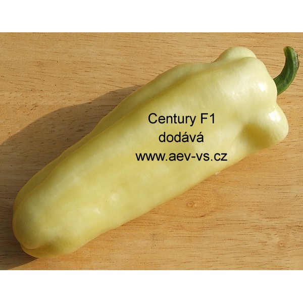 Paprika roční zeleninová (Capsicum annuum L.) Century F1 je raná asi 120 až 130 gramů těžká smetanově bílá kónická hybridní zeleninová paprika roční do skleníku, fóliovníku i na prosluněný záhon.