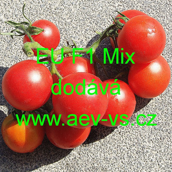Popis: Rajče tyčkové do skleníku (Lycopersicon lycopersicum) EU F1 Mix je speciální směs odolných asi 100-130 gramových zahraničních odrůd tyčkových hybridních rajčat s měkčí slupkou.